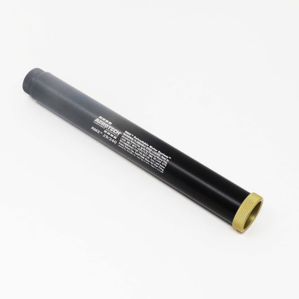 For use with all AeroTech RMS-29/240 high power motor reload kits. This reusable AeroTech RMS-29/240 motor hardware set includes the aluminum motor case, motor forward closure, forward seal disc, motor aft closure, and a 1cc tube of the Super-Lube grease for assembly. Motor reloads sold separately. Important: High Power RMS reload kits are not compatible with Mid Power RMS products.