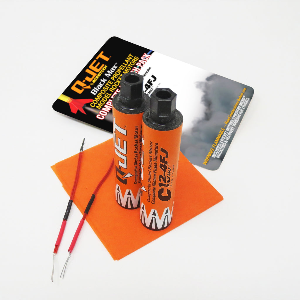 This Q-Jet™ 12-Motor Value Pack comes complete with 14 FirstFire™ Micro Initiators and bright orange Parachute Recovery Wadding. All Q-Jet™ motors are U.S.mailable with no hazmat fee!