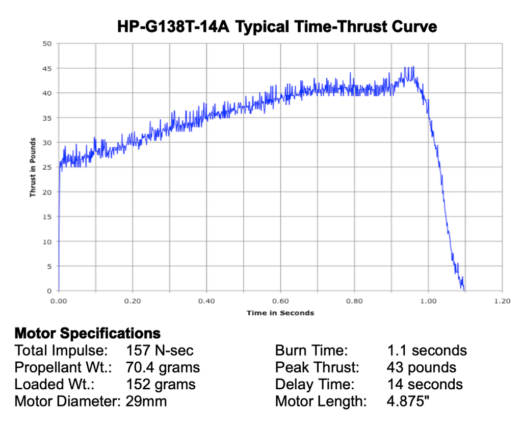 The AeroTech Reloadable Motor System RMS is an aluminum cased reusable motor in kit form that is assembled by the user. You will need AeroTech RMS-29/40-120 motor hardware to build and complete the motor for many reliable flights. Motor hardware is available separately in a complete set, and also as individual parts. Important: Mid Power RMS reload kits are not compatible with High Power RMS products. This RMS motor reload utilizes RCSs exclusive Blue Thunder™ aerospace grade composite propellant formulation, which produces a gorgeous bright violet-blue flame with a minimum of exhaust smoke. Blue Thunder™ motors provide a higher level of thrust than White Lightning™ motors of the same total impulse and are perfect for high lift-off acceleration.