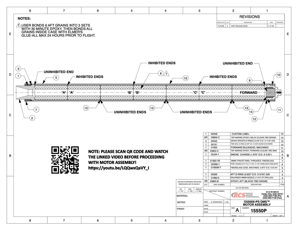 The new O5500X-PS DMS rocket motor replaces the O5280X-PS DMS rocket motor that has been placed on hold for more than a year due to casing integrity concerns. The O5500X-PS utilizes a new, thicker walled fiberglass casing and features updated assembly instructions, plus a new instructional video.