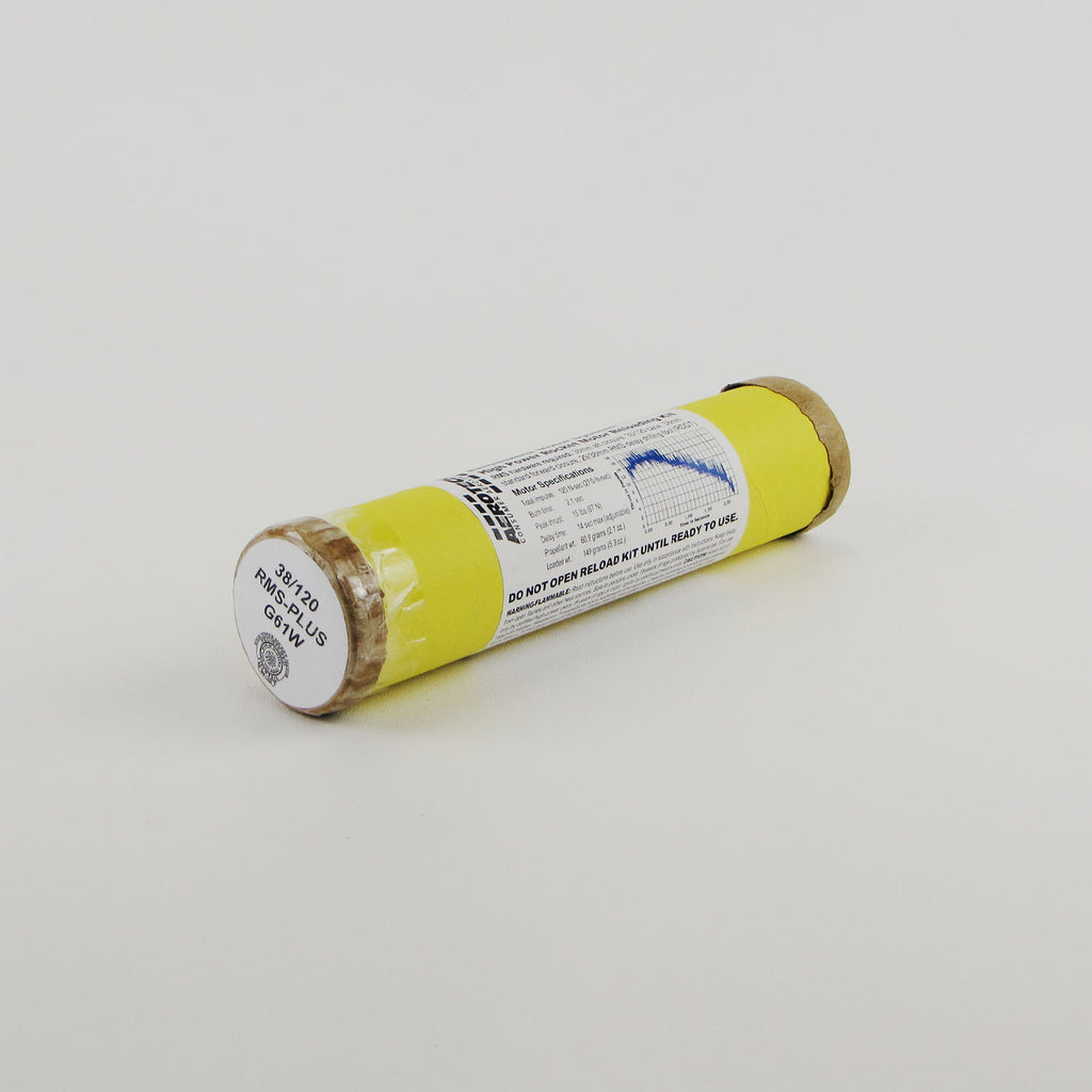 The AeroTech Reloadable Motor System RMS is an aluminum cased reusable motor in kit form that is assembled by the user. You will need AeroTech RMS-38/120 motor hardware to build and complete the motor for many reliable flights. Motor hardware is available separately in a complete set, and also as individual parts. Important: High Power RMS reload kits are not compatible with Mid Power RMS products. You will need to set the desired delay time using the 18-38mm Delay Drilling Tool (RDDT), Not Included. The 18-38mm Delay Drilling Tool (RDDT) is available in the AeroTech Accessories section of this website.