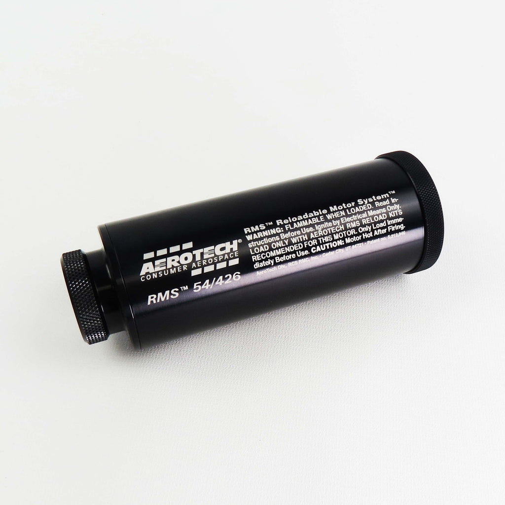 For use with all AeroTech RMS-54/426 high power motor reload kits. This reusable AeroTech RMS-54/426 motor hardware set includes the aluminum motor case, motor forward closure, small nozzle motor aft closure (54ACCSN), and a 1cc tube of the Super-Lube grease for assembly. Motor reloads sold separately. Important: High Power RMS reload kits are not compatible with Mid Power RMS products.