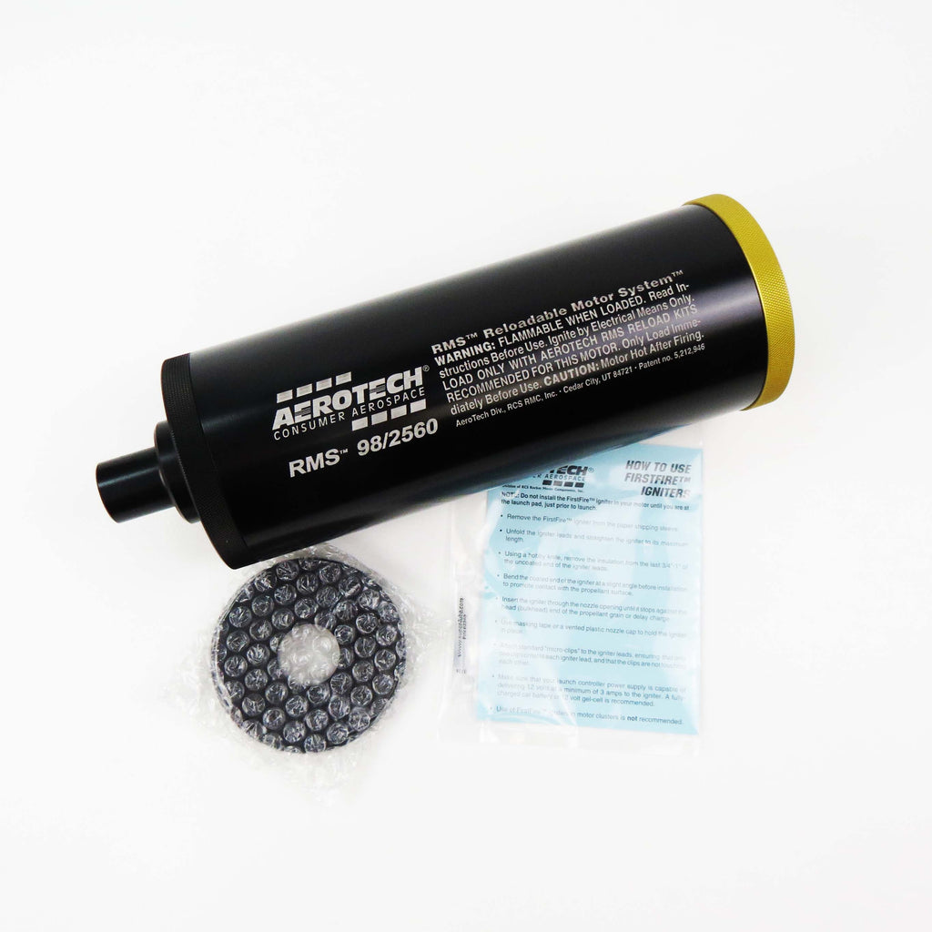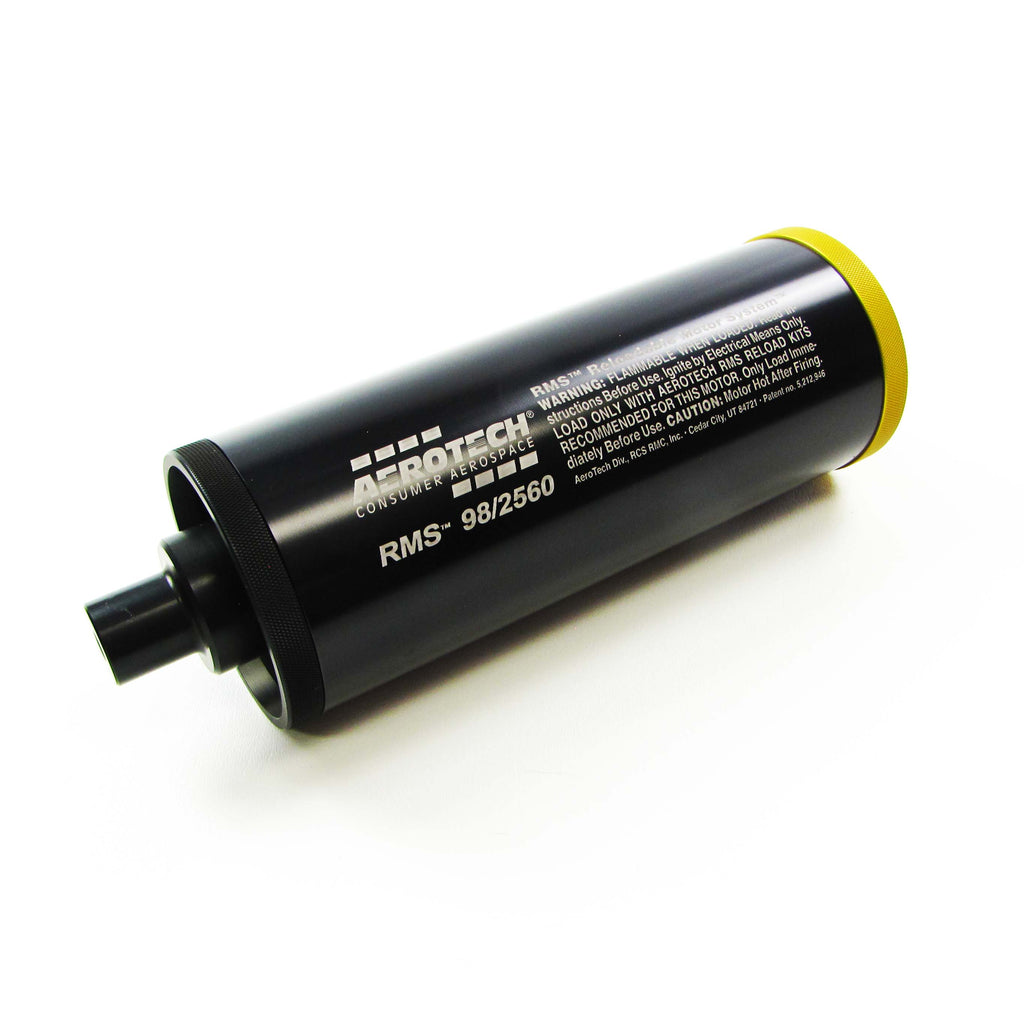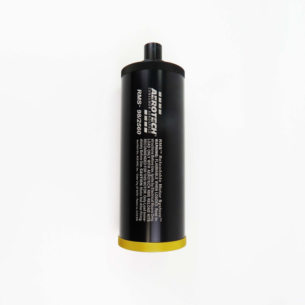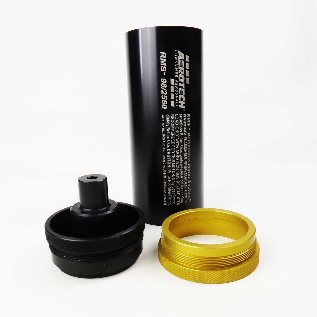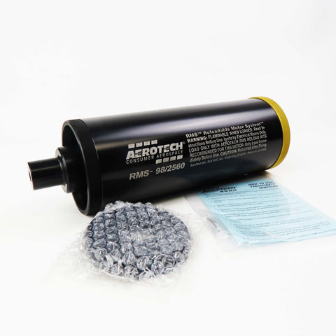 For use with all AeroTech RMS-98/2560 high power motor reload kits. This reusable AeroTech RMS-98/2560 motor hardware set includes the aluminum motor case, 98mm Forward Seal Disc, 98mm Forward Closure, 98mm Aft Closure, and a 1cc tube of the Super-Lube grease for assembly. Motor reloads sold separately. Important: High Power RMS reload kits are not compatible with Mid Power RMS products.
