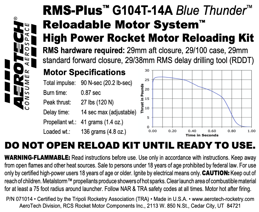 AeroTech G104T-14A RMS-29/100 Reload Kit (1 Pack) - 071014