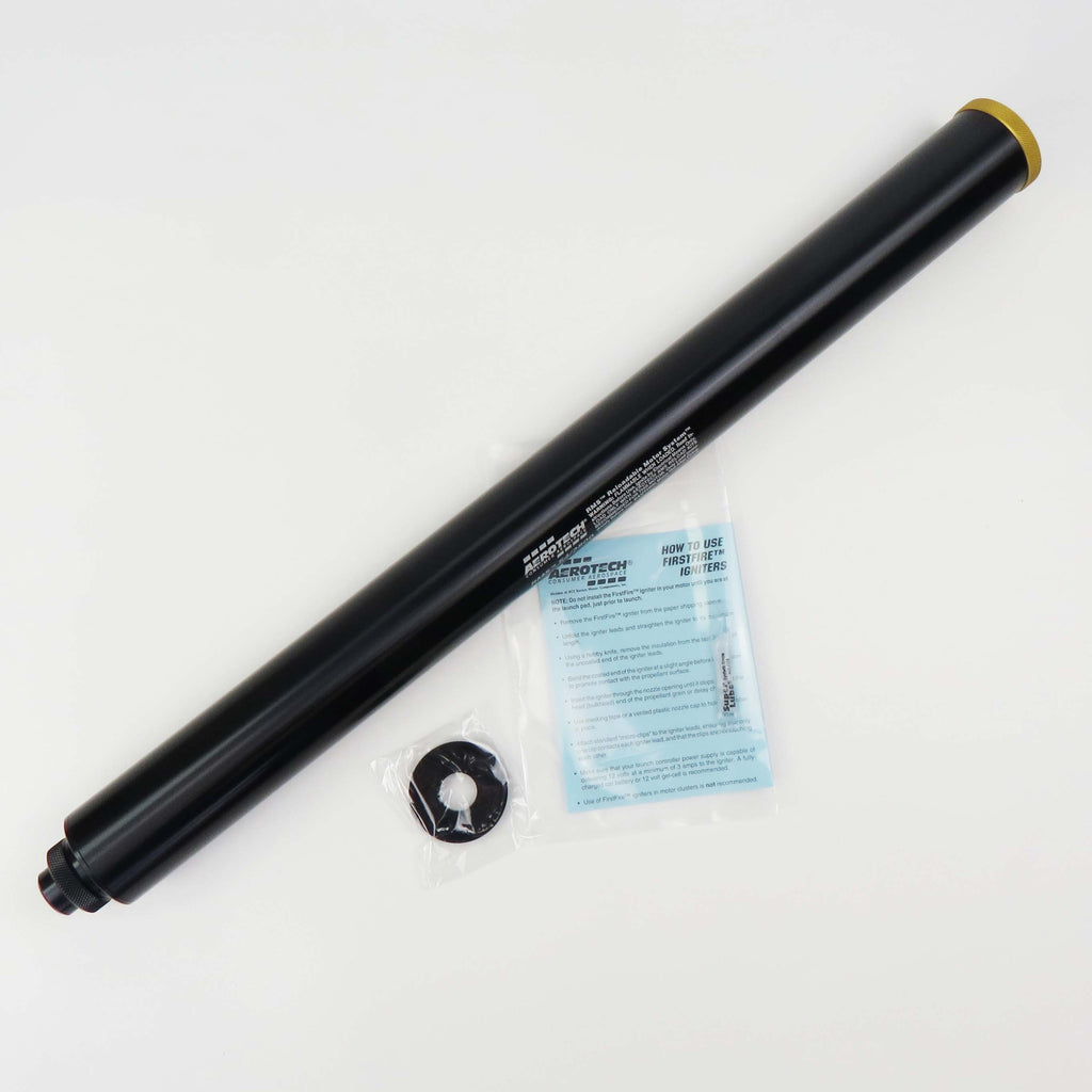 For use with all AeroTech RMS-54/2800 high power motor reload kits. This reusable AeroTech RMS-54/2800 motor hardware set includes the aluminum motor case, motor forward closure, forward seal disc, motor aft closure, and a 1cc tube of the Super-Lube grease for assembly. Motor reloads sold separately. Important: High Power RMS reload kits are not compatible with Mid Power RMS products.