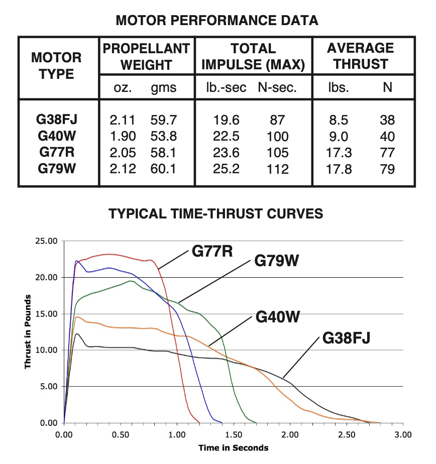 Maximum Liftoff Weight: Due to the variables involved, AeroTech/Quest currently does not list or post recommended maximum lift-off weights for their mid-power and high-power rocket motors. Instead, we recommend utilizing either the RockSim software available at www.apogeerockets.com or OpenRocket Simulator available at www.openrocket.info.